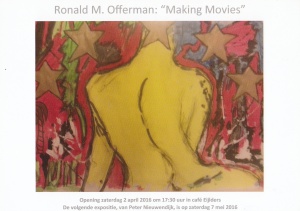 Twee april 2016 om 17.30 opening expositie ” Making Movies ” van Ronald M.Offerman in café Eijlders. Korte Leidsedwarstraat 47 Amsterdam m.m.v. o.a. de Burning Burrito,s
